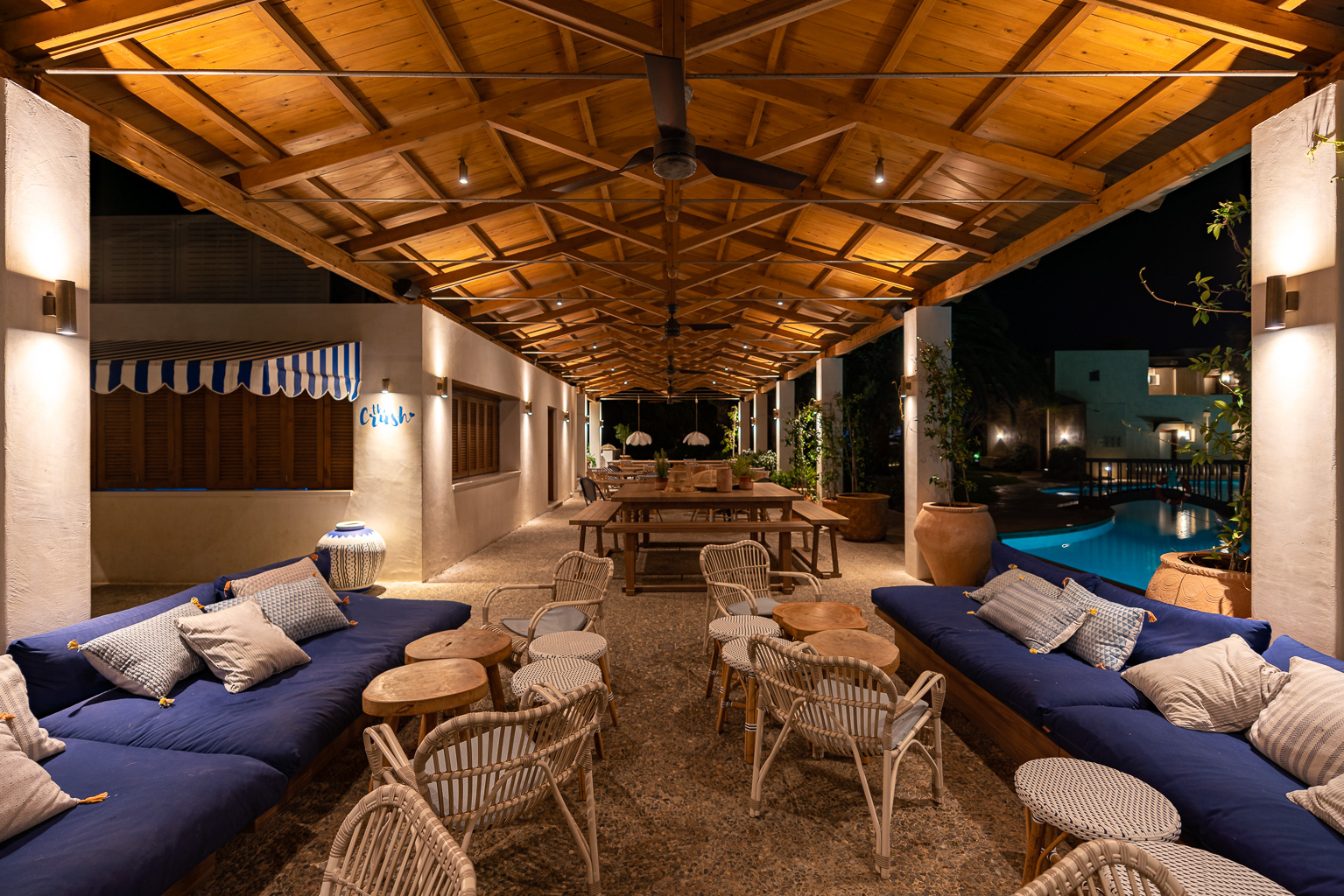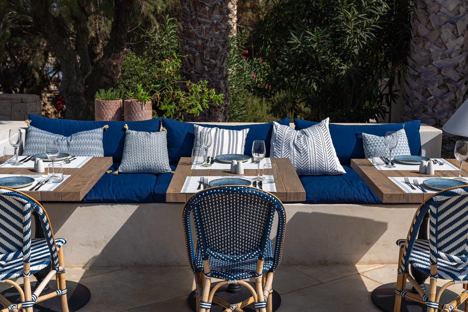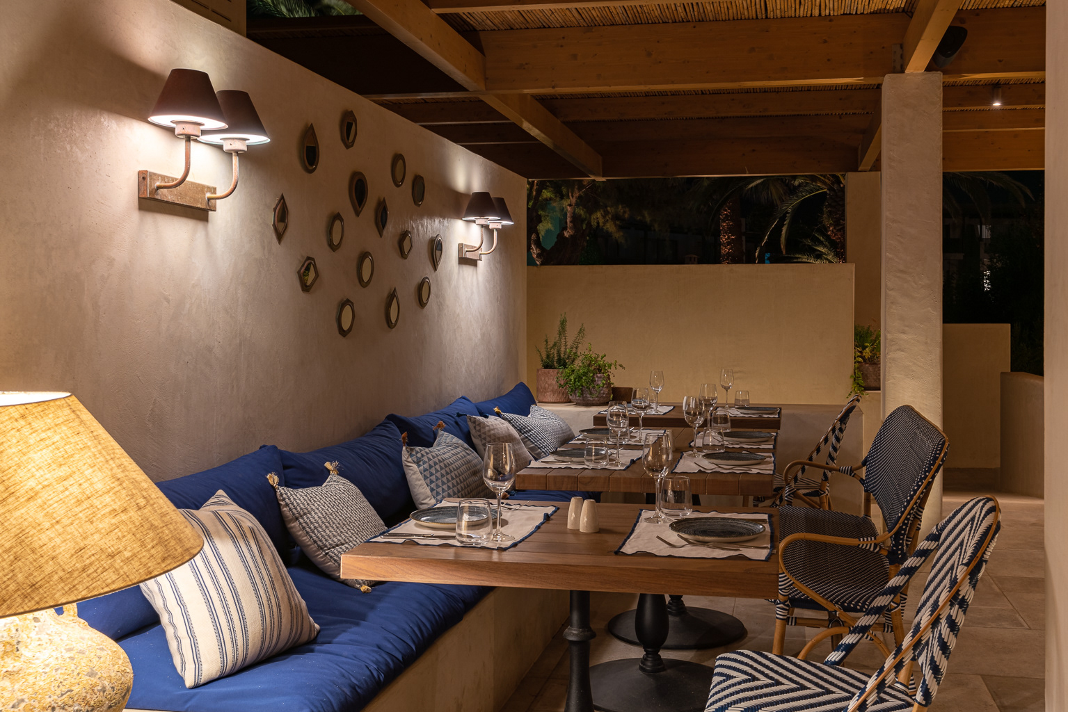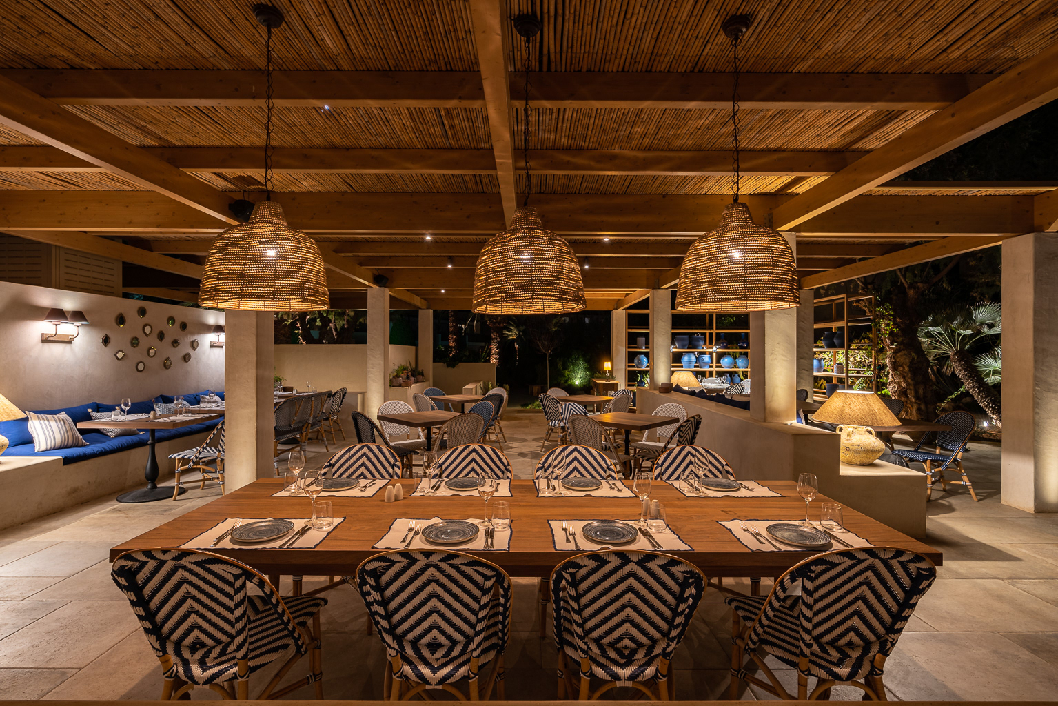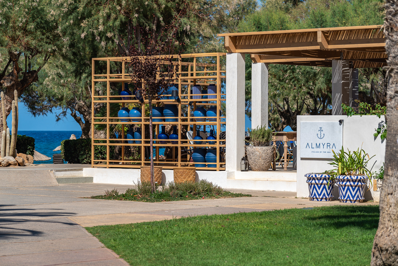 In keeping with the Cretan Malia Park's overarching inclination for Mediterranean themes, Almyra restaurant journeys to Italy for daily lunch and dinner. Positioned at the northernmost tip of the property and overlooking the sea, the restaurant presents a menu crafted by Chef Athinagoras Kostakos, where Italian dishes incorporate sustainably sourced, local ingredients for an assemblage of meals that are both fresh and authentic.