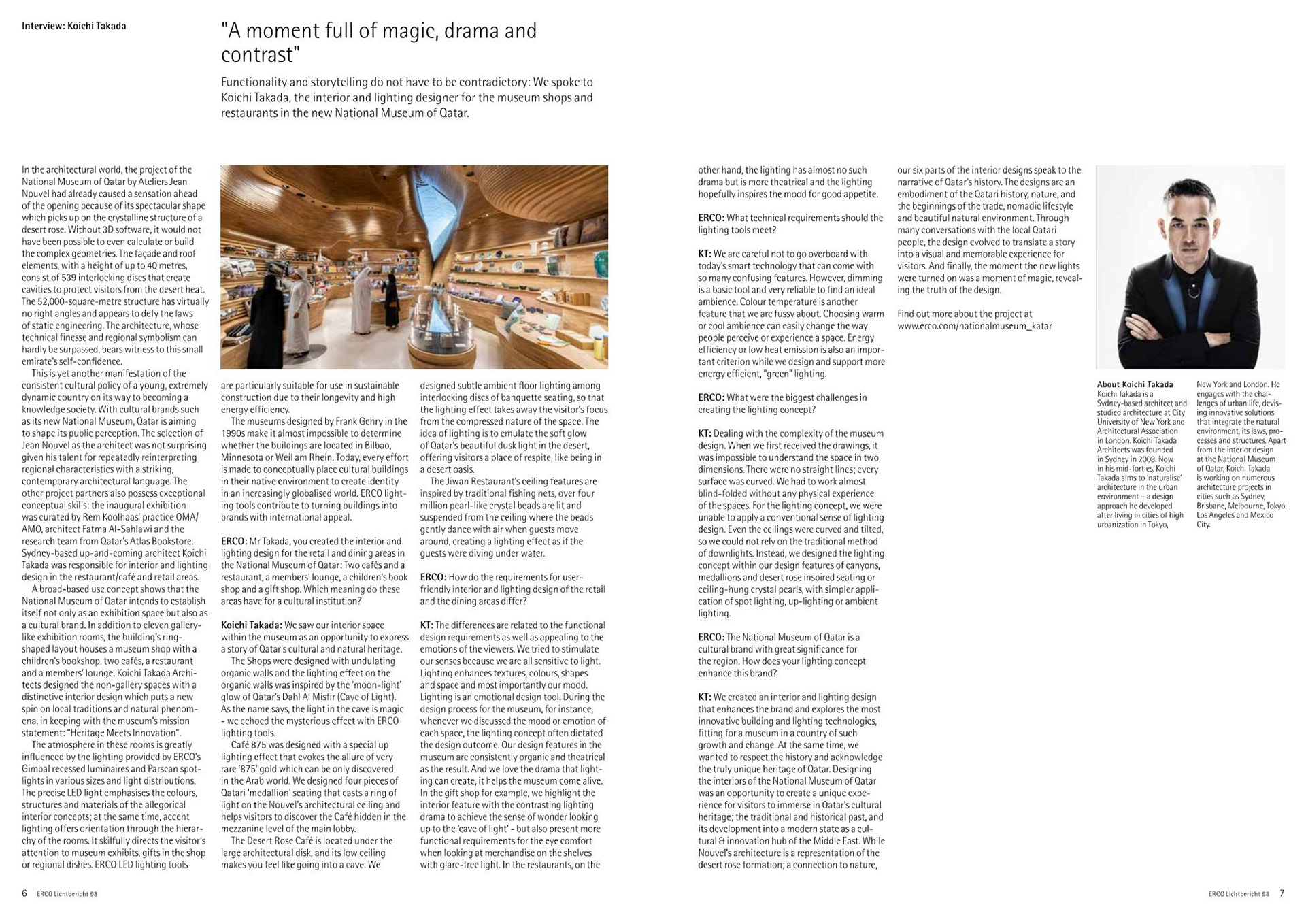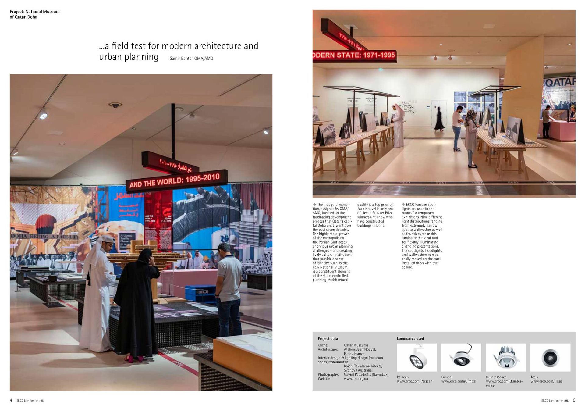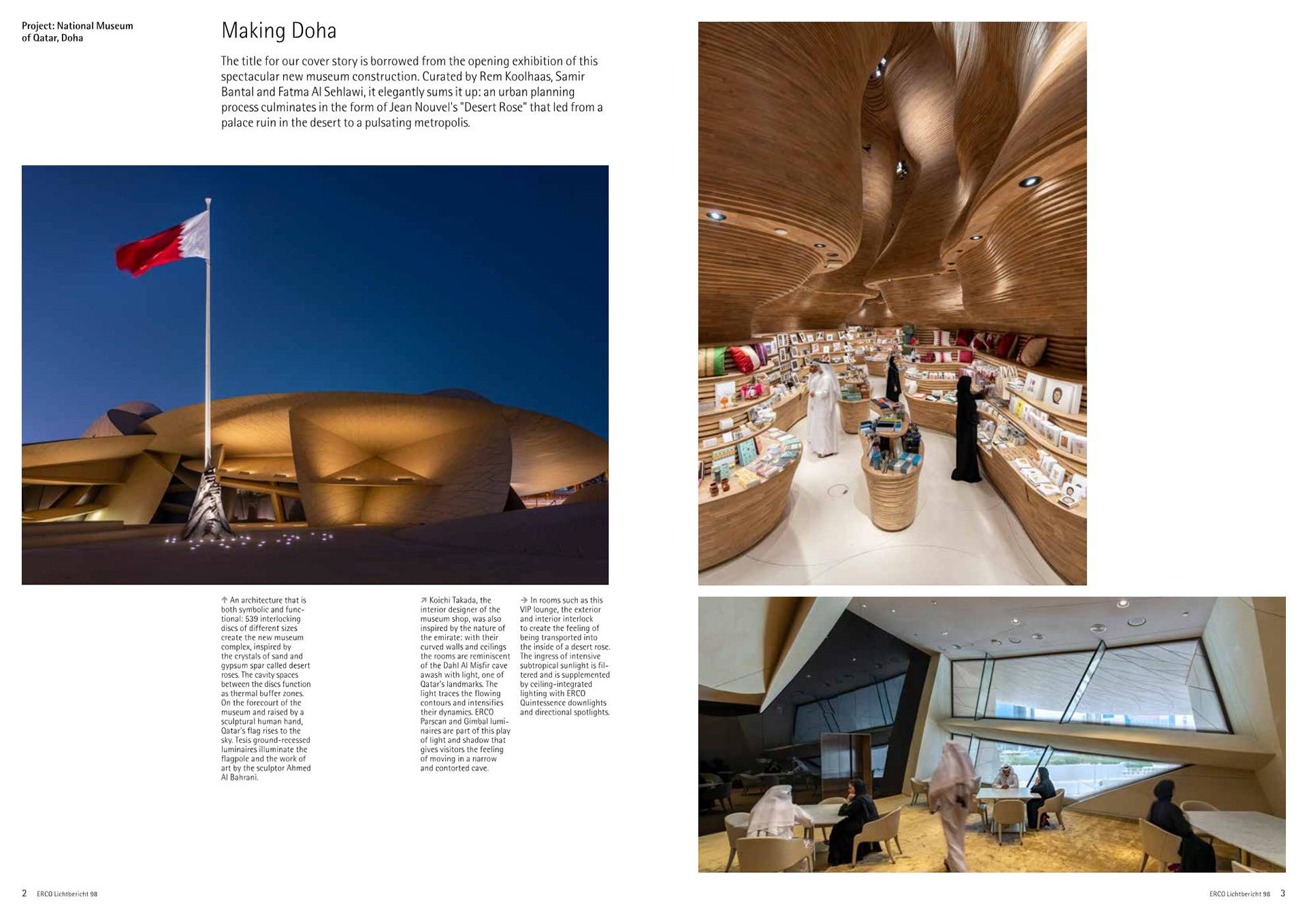 The National Museum of Qatar was photographed with ERCO lighting and made their Lichtbericht cover.